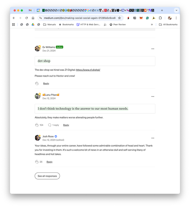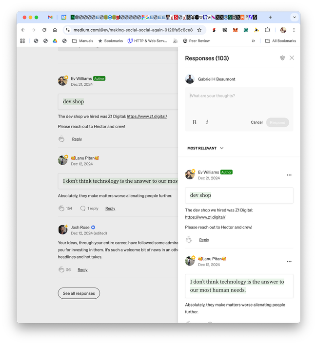 Like Medium. The Comment section opens has a button at the bottom to open all the Discussions which will open the right discussions panel.