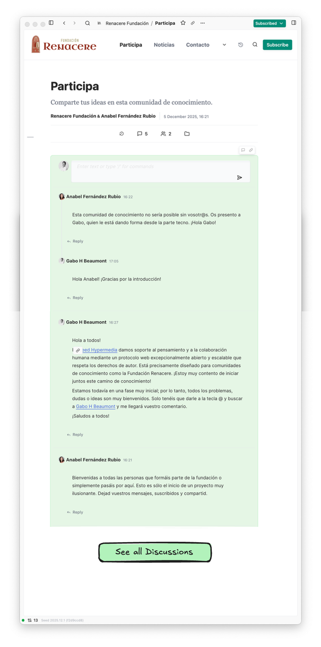 In summer, we decided to add the Discussion Embeds—I believe we want to transform them into Query or Discussion Blocks—to solve the use case where discussions are central; however, I wasn't 100% confident because I couldn't find a single other product that did this until I found Wikipedia Discussion Pages!