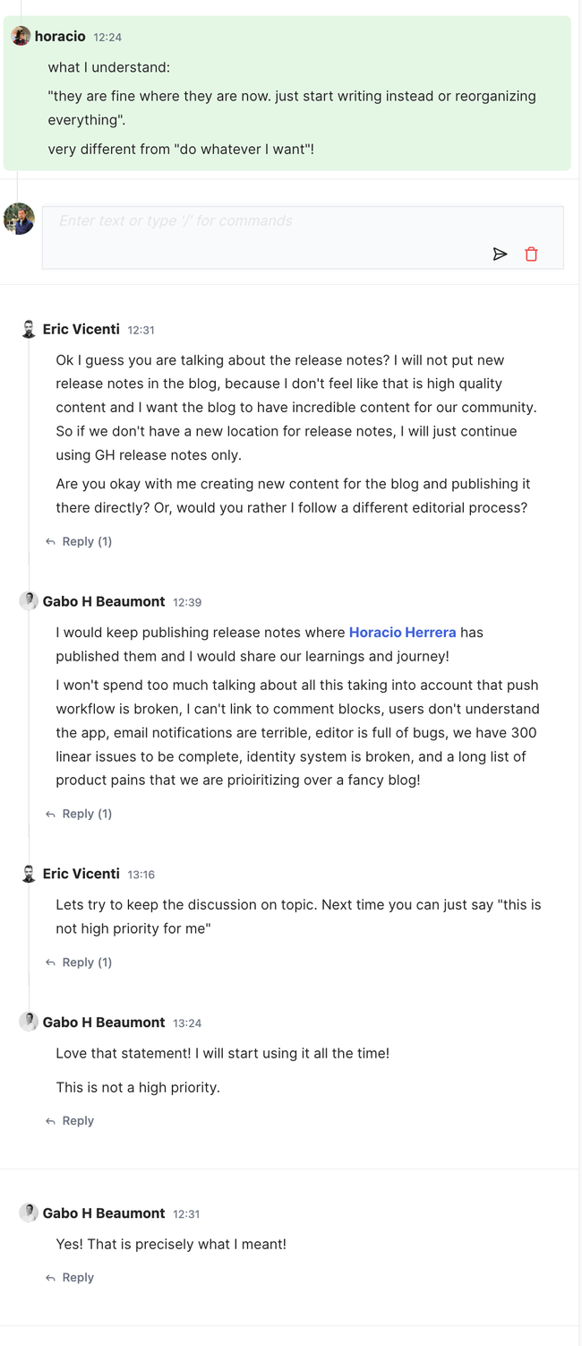 Why when I click on Eric's comment, I don't see the 5 replies to Horacio's comment? This is the most confusing part. The number says 8, but there's no way to see those 8 comments.
