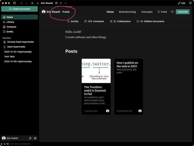We can add a profile link on the right side of the side header logo/name, We can even to a profile icon on hover. and on mobile we can add it visible somehow.