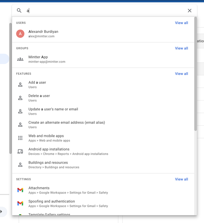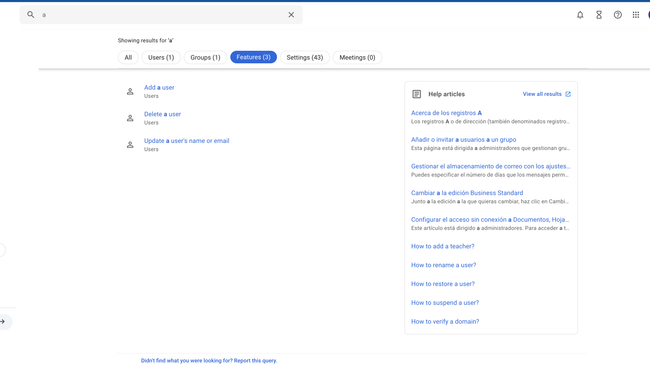 I like that the results panel has well-structured content: Users Groups Features, etc.