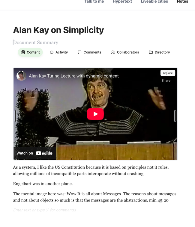 I was watching this video from Alan Kay. I was going to add some of his ideas to the text, but I can't because the video stops playing when I edit the document. Is there a reason for this? How easy is it to play YouTube videos in Drafts?