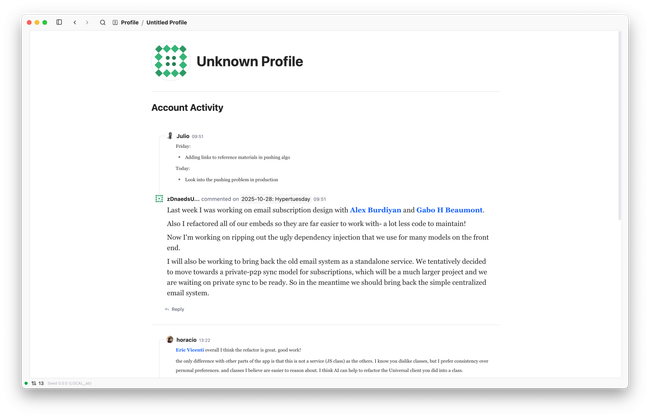 Now, on the Profile page, I can't subscribe or refresh the app to force discovery/syncing. Is there a way we can solve this? Eric VicentiAlex BurdiyanJuliohoracio ?