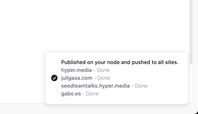 It will push to other servers if you reference those sites in your content. So if I link to juligasa.com in my document, then we need to make sure juligasa.com has the backlink, so we also push there. I now mentioned Julio in this note, and I am now sending his peer: