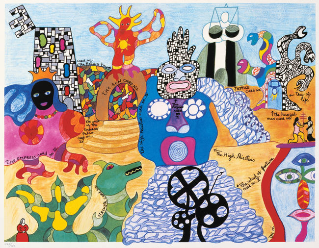 Tarot Garden, 1991. Litografía Entre el 10 de octubre y el 5 de enero del próximo año, la Casa Encendida presenta la exposición ‘La torre invertida. El tarot como forma y símbolo’, muestra que incluye obras de artistas como Frédéric Bruly, Bouabré, Johanna Dumet, Dorothy Iannone, King Khan y Michael Eaton, Raúl de Nieves, Plastique Fantastique, Betye Saar, Niki de Saint Phalle, Suzanne Treister, Aldo Urbano, Agnès Varda y Andy Warhol. Sobre la exposición, comisariada por Pilar Solar Montes, desde la Casa Encendida indican que: «A lo largo del tiempo el tarot se ha transformado permitiendo que su iconografía sea cada vez más flexible por medio de visiones subjetivas e ideas utópicas. Ha adquirido nuevas dimensiones gracias a su potencial para abrir la imaginación y la conciencia, convirtiéndose en un recurso que los artistas usan para pensar en futuros alternativos, cuestionar el pensamiento racional y como herramienta de autoconciencia. Existe en el tarot un recurso que ha interesado mucho a los artistas porque su naturaleza corresponde a una forma compleja, que contiene en su esencia un lenguaje hermético en cuya interpretación se ocultan asociaciones de imágenes símbolo organizadas por medio del azar, convirtiendo al tarot en un libro peculiar que se lee de la imagen a la palabra. El estudio del tarot tiene múltiples puntos de vista. Por ello la exposición propone un recorrido sin un orden narrativo lineal, como la estructura del juego de cartas, compuesto por una serie de artistas que han usado el tarot, su significado y posibilidades en sus obras». Cabe destacar que la Casa Encendida ofrece visitas guiadas gratuitas a la exposición los sábados, de 12 a 14 y de 17 a 20 horas, y los domingos, de 12 a 14 horas. No es necesario reserva previa, bastará con acudir en el horario indicado y preguntar en el Punto de Información. Dónde: Ronda de Valencia 2 Cuándo: del 10 de octubre al 5 de enero Cuánto: gratis