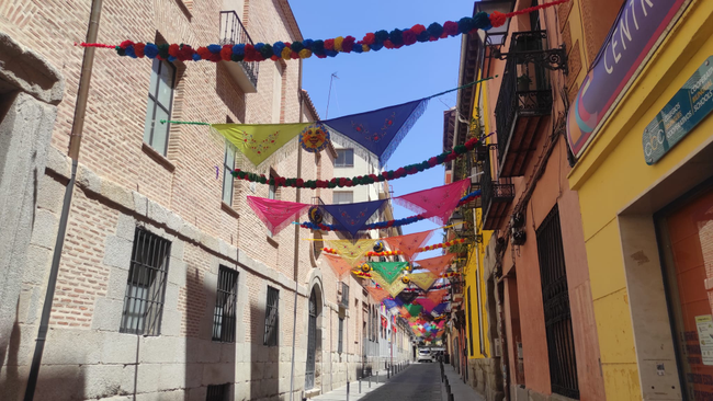 Altar de una de las pasadas ediciones | Foto: xLavapies.com Con la llegada de mayo regresa la celebración de Las Mayas a Lavapiés, ya sea el primer o el segundo domingo del mes, la fiesta hace que en las calles más cercanas a la iglesia de San Lorenzo se monten los altares propios de una tradición precristiana de bienvenida a la primavera. En 2024 es este día 5, a partir de las 11 de la mañana, cuando se podrá disfrutar de esta tradición. Recuperada en 1988 gracias a las agrupaciones Los Castizos, Arrabel, El Madroño y la ya desaparecida, Peña de la Simpatía, junto con la colaboración de la asociación vecinal La Corrala, Las Mayas continúan hoy con ayuda también de asociaciones y colectivos como Esta es una plaza, Fiestas Populares de Lavapiés y Hola Vecinas, responsables estos tres últimos de un novedoso altar y de darle un pequeño giro a una tradición que, en resumidas cuentas, consiste en que niñas entre la niñez y la adolescencia, vestidas con trajes de majas y mantones de Manila, permanezcan en unos tronos llenos de flores y construidos por cada agrupación para la ocasión, al tiempo que a su alrededor se reparten rosquillas, limonada, vino de la región, caramelos de violeta y plantas, mientras suena la música de grupos de dulzainas y tambores y de rondallas de bandurrias, panderetas y guitarras. La jornada finalizará con una ofrenda floral en la Iglesia de San Lorenzo. Otro de los altares de la pasada edición y goyescas | Foto: xLavapies.com BIEN DE INTERÉS CULTURAL