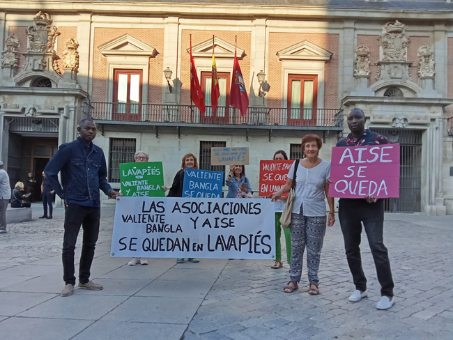 Momento de la firma del nuevo contrato en las oficinas de la EMVS La asociación Valiente Bangla acaba de firmar este lunes un nuevo contrato de alquiler con la Empresa Municipal de la Vivienda (EMVS) que le permitirá continuar como inquilino durante los próximos cinco años en su actual sede del número 14 de la calle Provisiones, un local del Ayuntamiento de Madrid que se les había dicho que debían abandonar tras la finalización del anterior contrato. Fue a finales de agosto de 2024 cuando tanto esta asociación de migrantes de Bangladés como sus hasta entonces vecinos de AISE, asociación de migrantes de Senegal, recibieron la noticia de que la EMVS no tenía intención de renovar los contratos de alquiler de los locales en los que ambas agrupaciones venían desarrollando su actividad y que les habían sido cedidos a cambio de una mínima renta durante la estancia de Ahora Madrid en la alcaldía. Aquella información provocó una movilización en apoyo de la continuidad de Valiente Bangla y de AISE en sus respectivos locales por parte de gran parte de las asociaciones y colectivos sociales activos en Lavapiés, que llevaron en distintas ocasiones su protesta a las puertas del pleno del distrito Centro y realizaron una campaña de respaldo a las citadas asociaciones en la que consiguieron reunir miles de firmas. Valiente Bangla y AISE reivindicaban la intensa acción sociocultural que realizan en la zona como aval para lograr la continuidad en el espacio físico del que se les quería echar, mientras que el tejido asociativo del barrio denunciaba que los planes municipales suponían «pasar del abandono institucional (del barrio) al desmantelamiento del tejido asociativo migrante» de Lavapiés, siendo este «un paso más en la escalada del racismo institucional y de la insensibilidad hacia los colectivos vulnerables que la Corporación presidida por Martínez Almeida ha demostrado desde que tomó posesión y, especialmente, en el último año». Por su parte, la EMVS se lavaba las manos, aduciendo que la renovación o no renovación de los alquileres a las citadas asociaciones era una cuestión de voluntad política, delegando toda responsabilidad en el concejal presidente del distrito, Carlos Segura. «Las solicitudes de adjudicación de locales deben presentarse en la Junta Municipal de Distrito donde esté el local» y es esa Junta «la encargada de avalar y autorizar las solicitudes», así como de «comunicar a la EMVS la autorización acordada por ella» y de «velar por que la labor social (de los cesionarios) se realice de forma efectiva», afirmaba el consejero delegado de la empresa pública y responsable del área de Vivienda, Álvaro González López, en septiembre de 2024. Tras la rectificación municipal, la firma del nuevo contrato de alquiler permite a Valiente Bangla seguir legalmente en Provisiones 14 hasta mayo de 2030. Merced a este nuevo acuerdo la asociación pagará una renta de 60 euros mensuales por un local de apenas 20 metros cuadrados, haciéndose cargo también de los gastos de comunidad del mismo. Por su parte, AISE no continuará en el local de la misma calle donde ha tenido su sede durante los últimos siete años. Desde la Junta de Centro aseguran que esta asociación acabó renunciando a la cesión del local.