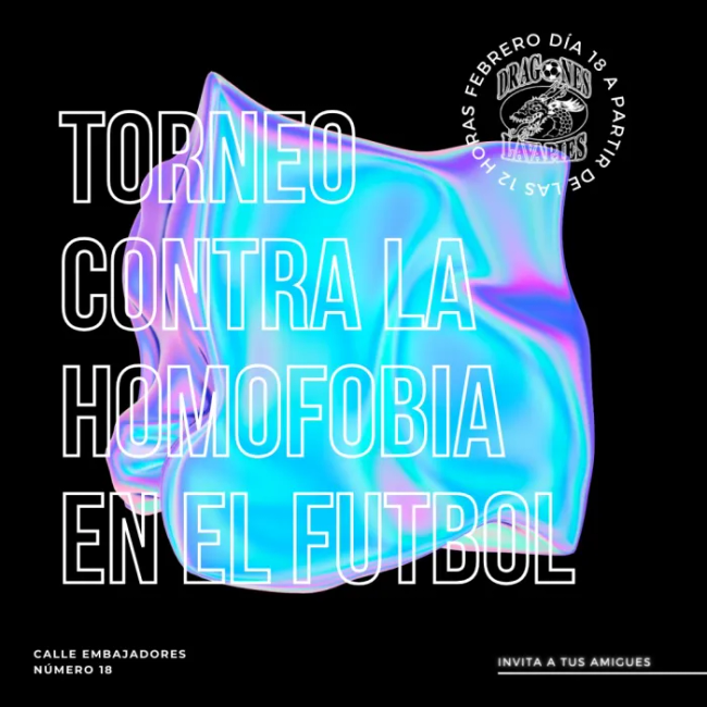 El próximo domingo, la cancha deportiva de Embajadores 18 acogerá el I Torneo Contra la Homofobia de las Dragonas de Lavapiés, una competición en la que solo participarán equipos ‘queer’ y que está organizada por el club Dragones de Lavapiés con motivo de la celebración, el 19 de febrero, del Día Internacional contra la Homofobia en el Fútbol.