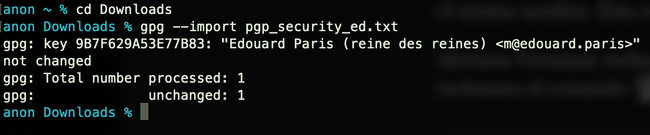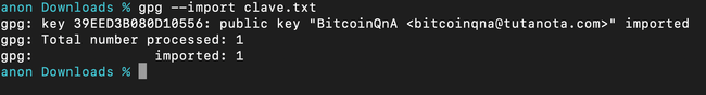 Por último, en terminal escribe "gpg --import" + el nombre del archivo. Et voilá: