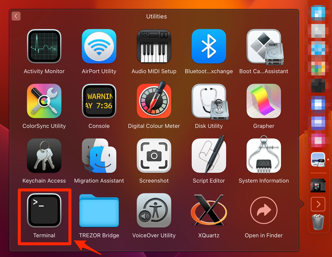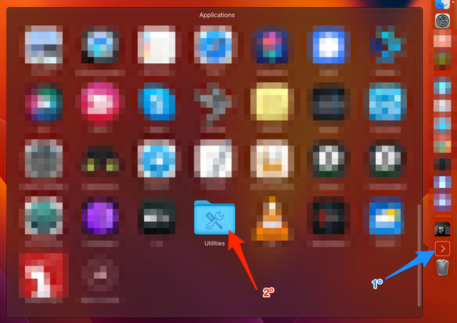 Haz click en el icono de aplicaciones y busca la carpeta "Utilities". Dentro encontrarás la aplicación "Terminal".