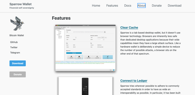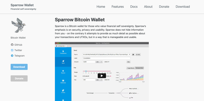 Si entras en algún grupo de esos sin saber que son un scam y sigues sus consejos, podrías acabar descargando software malicioso desde una web que es una mera copia de la página oficial. Veamos como luce la web real: www.sparrowwallet.com
