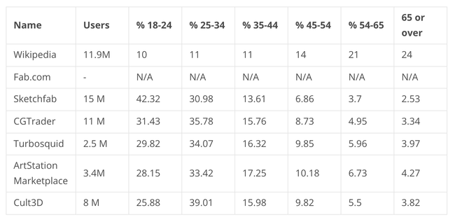 Sketchfab, Turbosquid, CGTrader and Cults3D. https://www.similarweb.com/