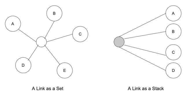 When traversing a link the user always uses an endpoint that is a member of that link as a starting point. When traversing a Set the user arrives at all the endpoints except the starting one. So if the user started from endpoint B on the left hand...