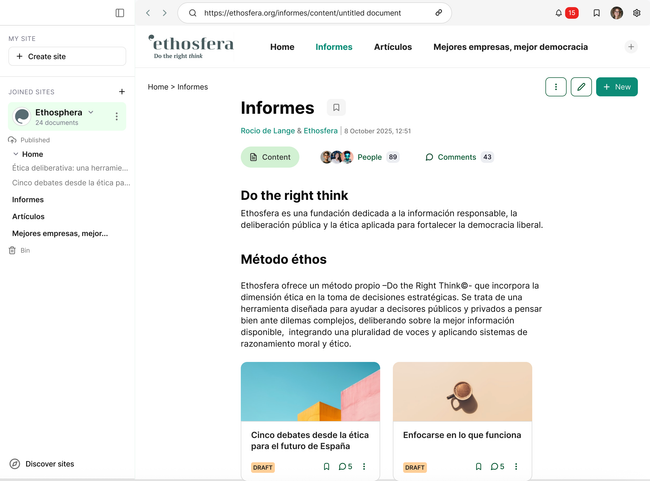 ✅ For writers: Joined sites works well. Keep it as is, same with Create New.