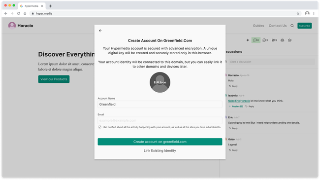 To create an account form scratch on the web it can be done in one of two ways though starting a comment or clicking the join button at the bottom. Both of this options will display a pop up inciting users to create a new account on that domain.