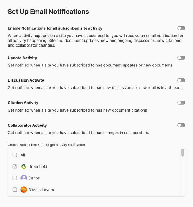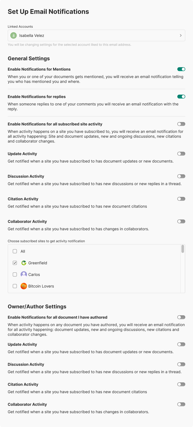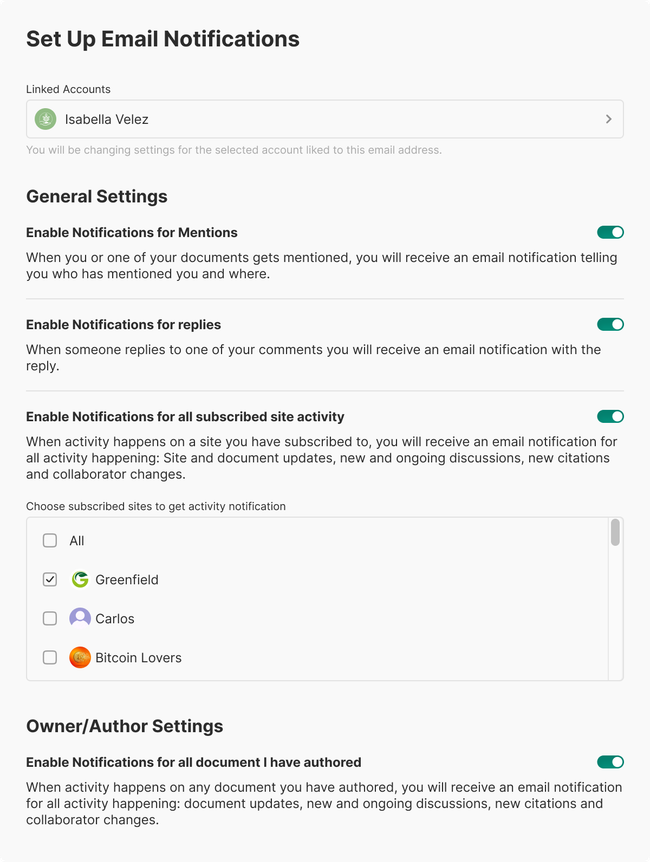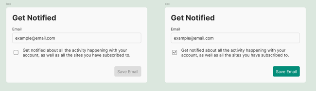 This will be the pop up when asking users if they want to get email notifications. The specific email setting will only be accessible form the notifications setting section.