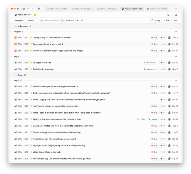 Once a solution is agreed-upon, a Linear Task is created and assigned to a responsible person. It is prioritized alongside: