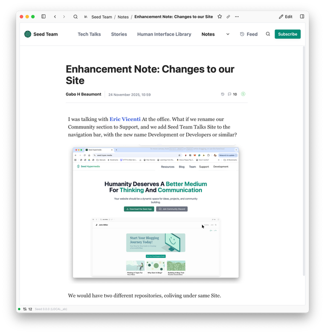 Each Hypertuesday, we review User Feedback as a team. User Feedback becomes part of our knowledge repository and exposes conflicts within it. A core task of the Seed System is to, as knowledge emerges, identify and resolve these contradictions and shape better solutions.