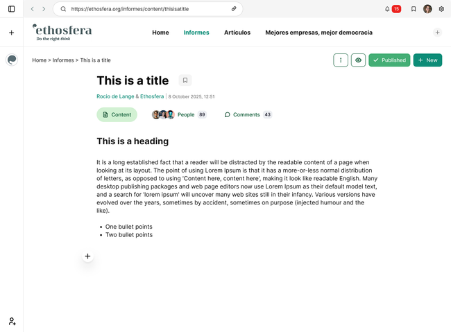 We used to have a + button on the left side of the sidemenu too, but we removed it because it was forcing us to increase the padding around the content, making the content thiner and less readable/easy to use.