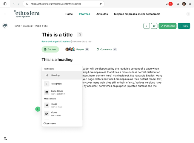 Users are not finding what blocks they are capable of using on their Hypermedia documents. we need to make it obvious and easy to show what you are capable of doing on a Hypermedia documents.